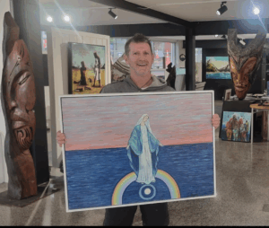 I recently dropped a freshly framed oil painting of mine to the amazing Art By The Sea Gallery in Takapuna, Auckland City. If you haven’t been yet, make sure you stop by to say hello to Mike and his whanau when you are in the area. They have been in the art business for a very long time!